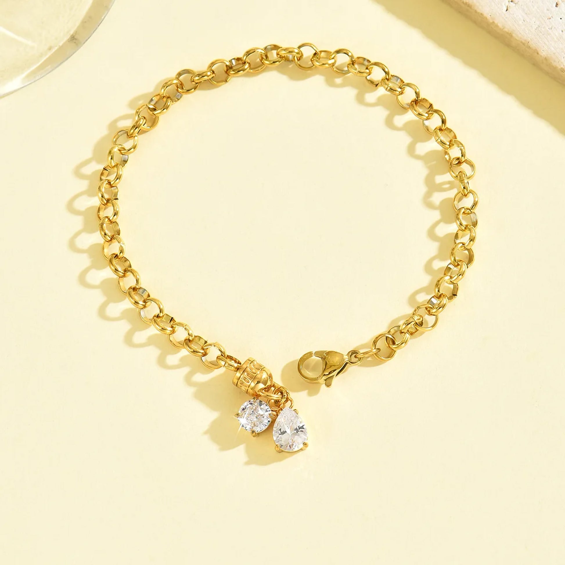 Las joyas de acero inoxidable son resistentes a la humedad gracias a su capa protectora de cromo, que las protege contra la oxidación y el deslustre. La mayoría de nuestras piezas están diseñadas con acero inoxidable chapado en oro auténtico de 18 quilates mediante el avanzado método PVD (deposición física de vapor), que aumenta su durabilidad y resistencia al desgaste.