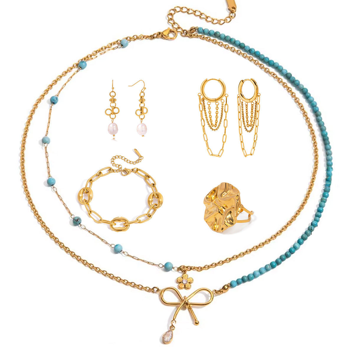 Stainless steel jewelries are moisture-resistant as they contain chromium a protective layer that make them resistant to rust and tarnish. Most our pieces are designed with stainless steel plated with 18K real gold using the advanced PVD (Physical Vapor Deposition) method, which enhances their durability and resistance to wear.