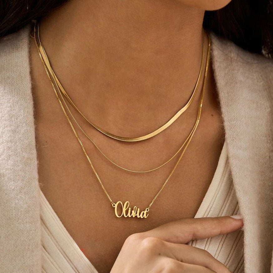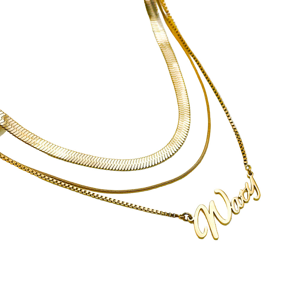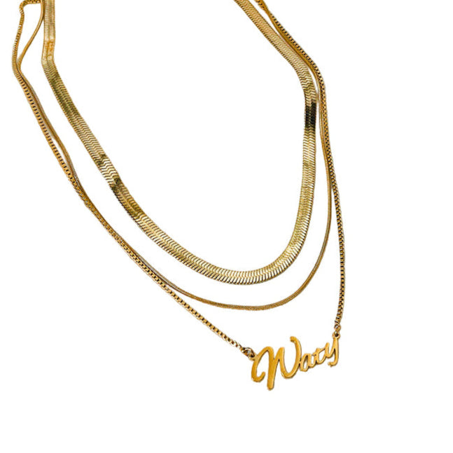 This necklace combines expert craftsmanship with durable materials, featuring 14k gold plated PVD stainless steel for enhanced longevity and shine. Its waterproof and hypoallergenic properties ensure comfortable, worry-free wear, while the tarnish-free finish maintains its elegant appearance. Designed with a sophisticated triple-layered style, this personalized necklace offers a timeless accessory that complements any look.